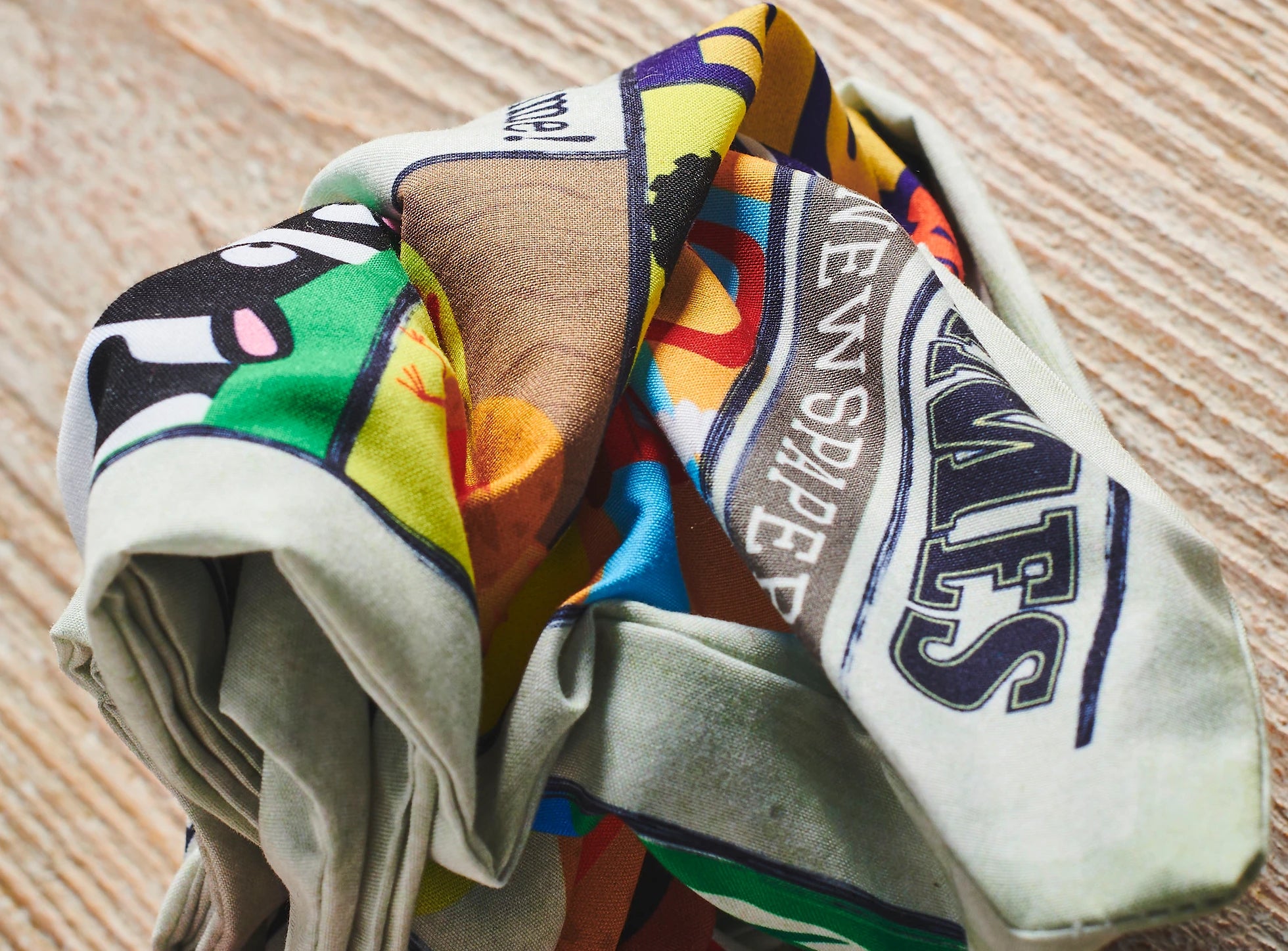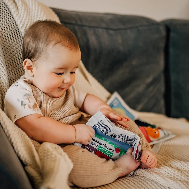 A six page crinkly cloth book designed to look like a little newspaper. Safety tested to UKCA standards. Each newspaper comes packed in a little envelope. There's a space to write To and From making it the perfect unique gift. Add a large letter stamp to send in the post.